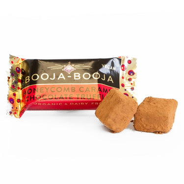 A small pack of Booja-Booja Honeycomb Caramel chocolate truffles on a white background A small pack of Booja-Booja Honeycomb Caramel chocolate truffles on a white background